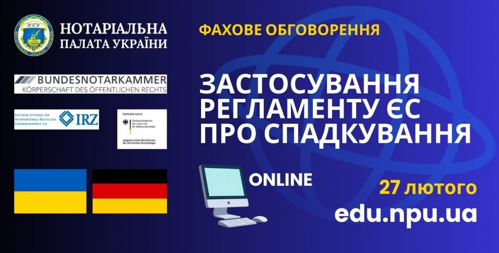 27 лютого, 10:00 запрошуємо нотаріусів на безкоштовний захід з підвищення професійного рівня – фахове обговорення на тему «Застосування Регламенту ЄС про спадкування (EuErbVO)».