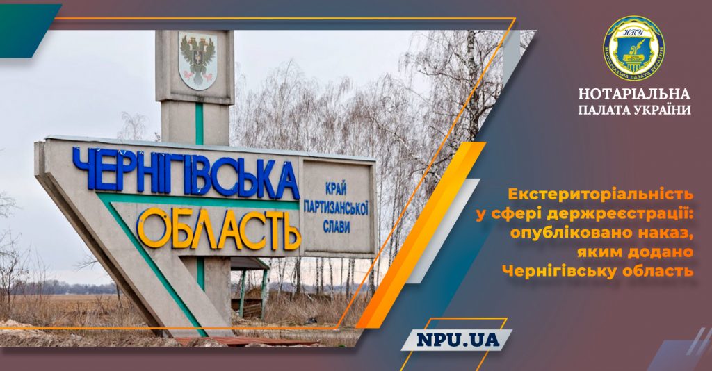 Даним наказом до областей, які відносяться до екстериторіальних в сфері державної реєстрації нерухомості та бізнесу, додано Чернігівську область.