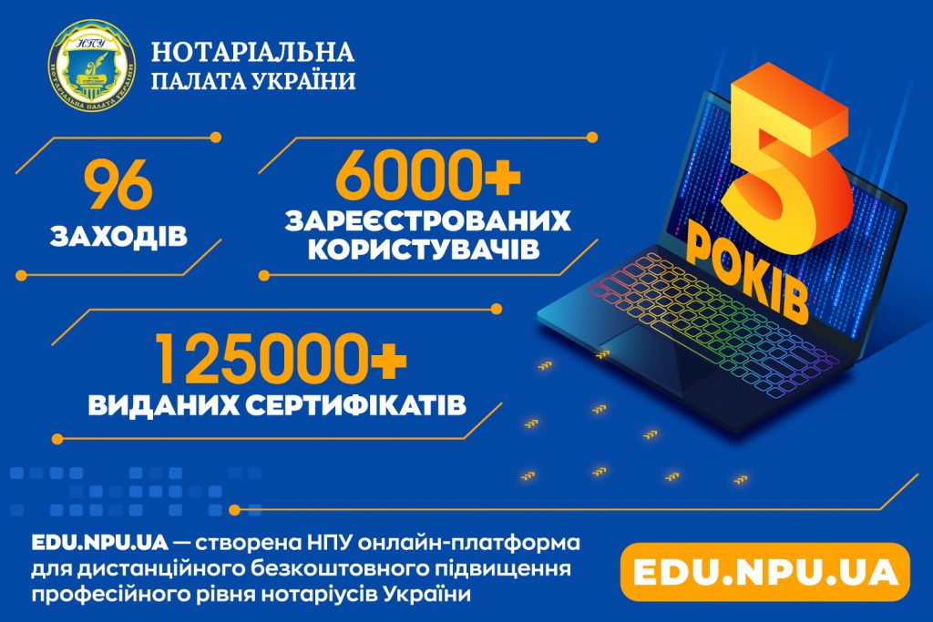 19 листопада 2020 року відбувся перший захід на онлайн-платформі, створеній Нотаріальною палатою України для дистанційного безкоштовного підвищення професійного рівня нотаріусів.