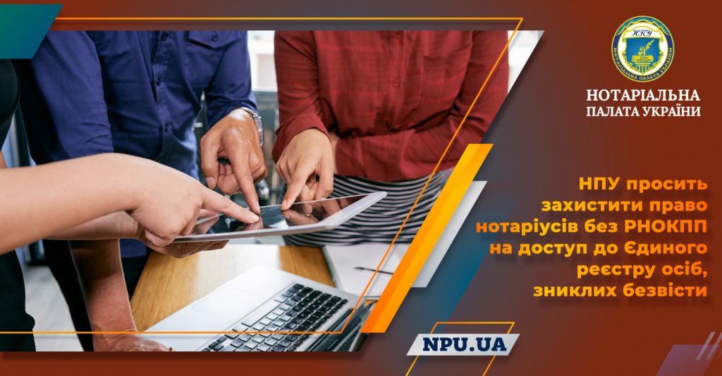 Нотаріальна палата України звернулася до Уповноваженого Верховної Ради України з прав людини з проханням захисти права нотаріусів, які з релігійних переконань відмовились від отримання Реєстраційного номера облікової картки платника податків, та сприяти зняттю незаконних обмежень щодо доступу до Єдиного реєстру осіб, зниклих безвісти за особливих обставин.