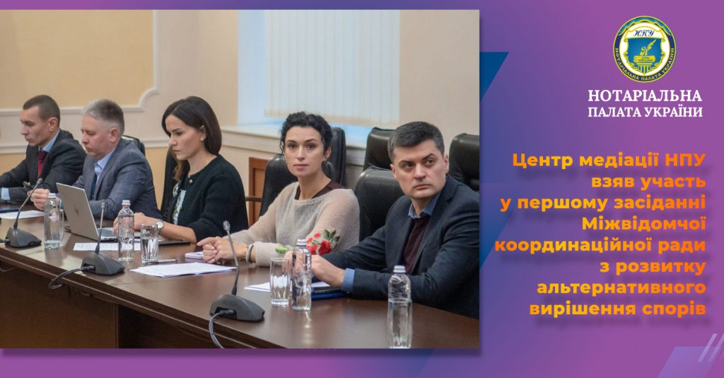 1 грудня 2025 року Голова Центру медіації Нотаріальної палати України Ірина Петрова взяла участь у першому засіданні Міжвідомчої координаційної ради (МКР) з питань розвитку альтернативних способів вирішення спорів, що відбулося в Міністерстві юстиції України у змішаному форматі під головуванням директора Директорату правосуддя та кримінальної юстиції Олександра Олійника.