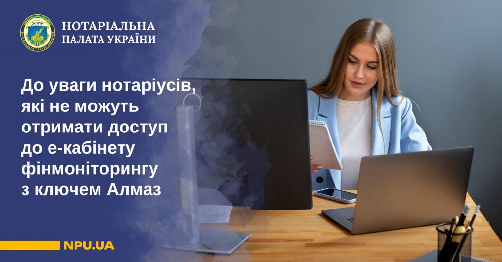 На сьогодні Нотаріальної палатою України зафіксовано випадки, коли нотаріуси не можуть отримати доступ до е-кабінету ФМ за допомогою КЕП/ЕЦП, апаратний ключ/ тип носія: Алмаз, який використовується всіма нотаріусами України для доступу до Єдиних та Державних реєстрів.