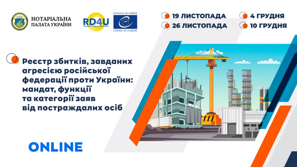 19 листопада відбувся безкоштовний онлайн-захід для нотаріусів, які проводить RD4U спільно з НПУ, на тему «Реєстр збитків, завданих агресією російської федерації проти України: мандат, функції та категорії заяв від постраждалих осіб».
