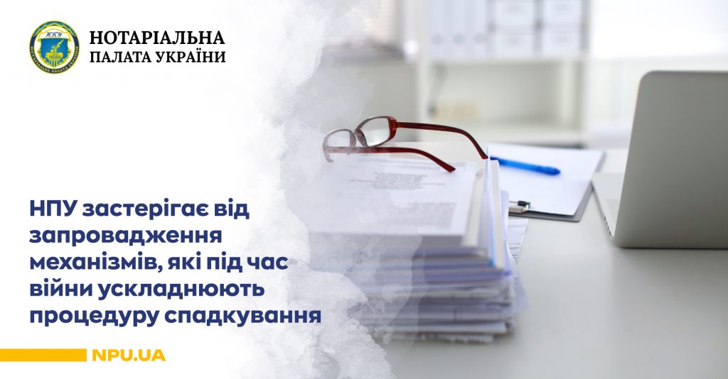 НПУ застерігає від запровадження у нотаріальні процедури механізмів, які в час війни в рази збільшать час на вчинення кожної нотаріальної дії, що призведе до високої соціальної напруги серед населення, особливо на всіх прифронтових територіях, а також неможливості оформлення спадщини, зважаючи на відключення електроенергії та обстріли, адже реєстраційні дії в межах однієї спадкової справи і на сьогодні (без прийнятого «покращення») можуть займати від 2 до 48 годин (залежно від кількості видів майна).