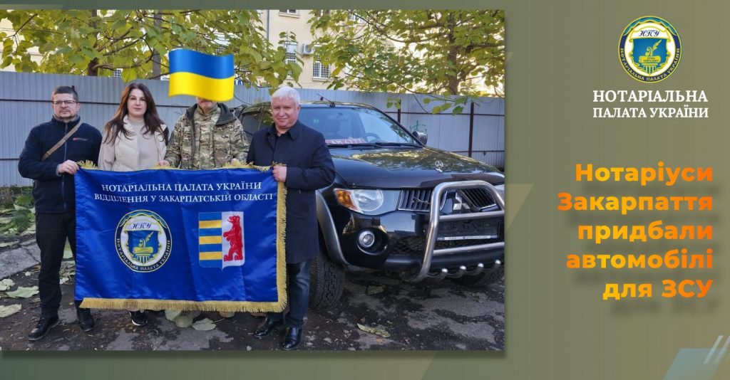 Відділення Нотаріальної палати України в Закарпатській області придбало для Збройних сил України два автомобілі, пікап Mitsubishi L200 та Nisan Navara NP 300, а також підготували обидві машину в дорогу та придбали продукти харчування для воїнів.